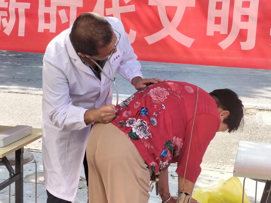 在义诊点,经验丰富的医务工作者们,认真为居民测量血压,细致解答疑问,针对不同病症和个体差异提出合理的诊疗建议和治疗方案,还为大家讲解常见病、多发病的预防知识和注意事项。