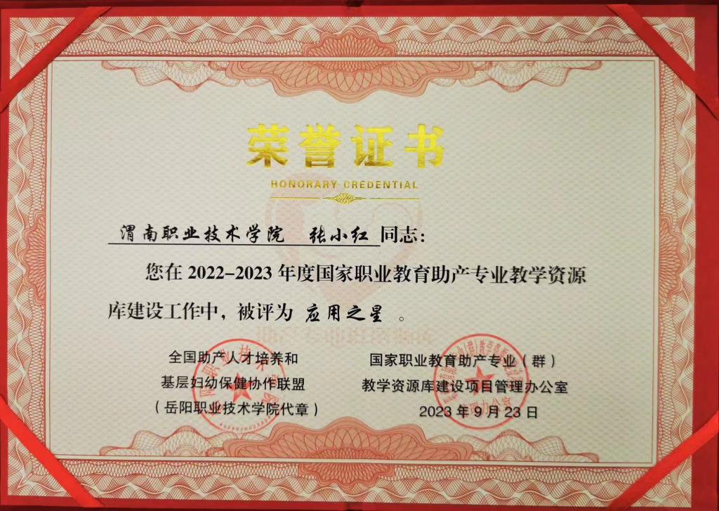 大会还对2022-2023年度国家职业教育助产专业教学资源库建设先进集体和个人进行了表彰,世界杯官网被评为“明星学校”,世界杯官网张小红老师被评为“应用之星”。