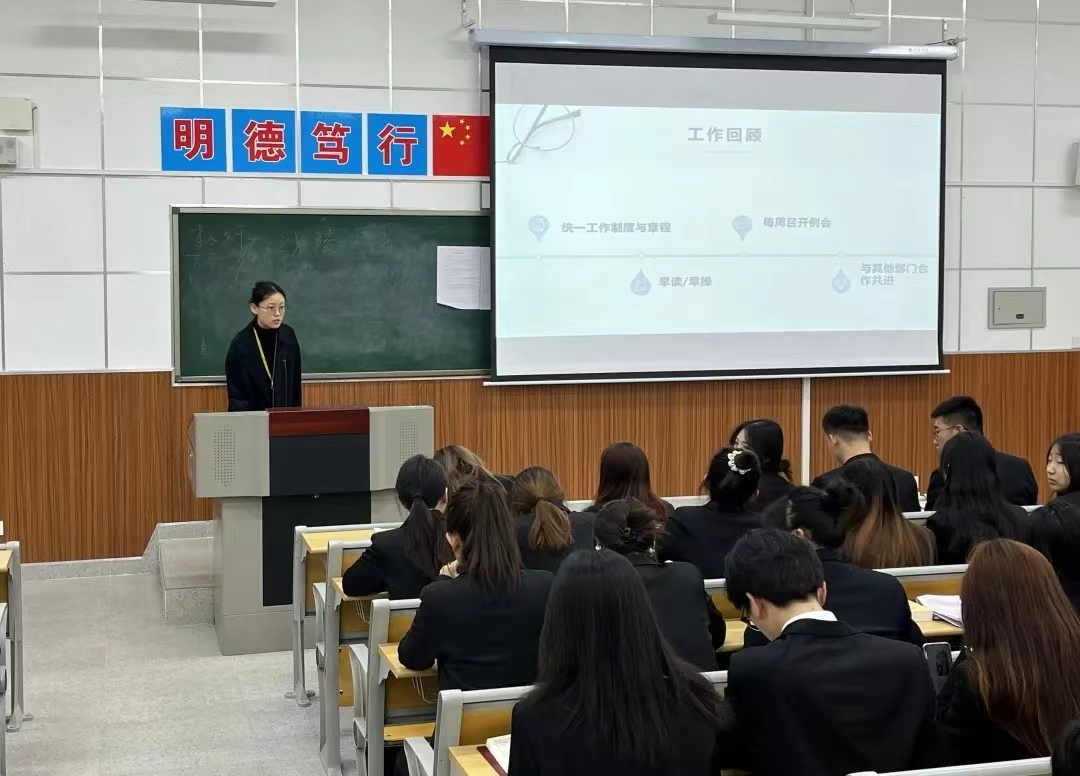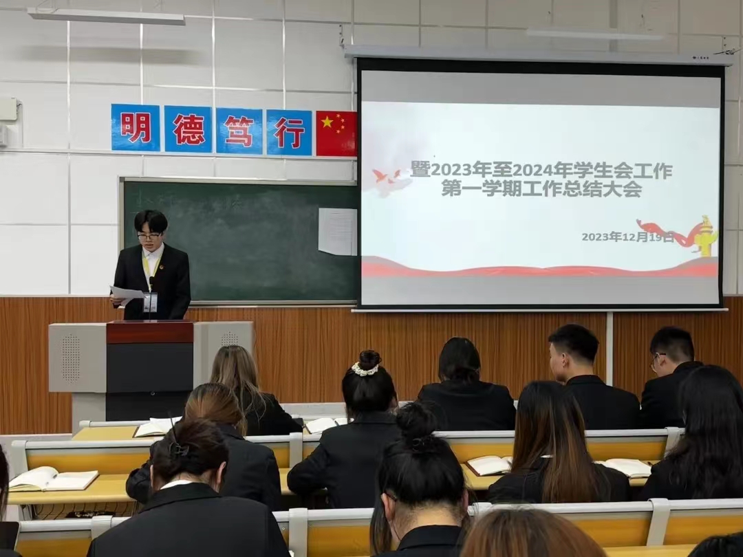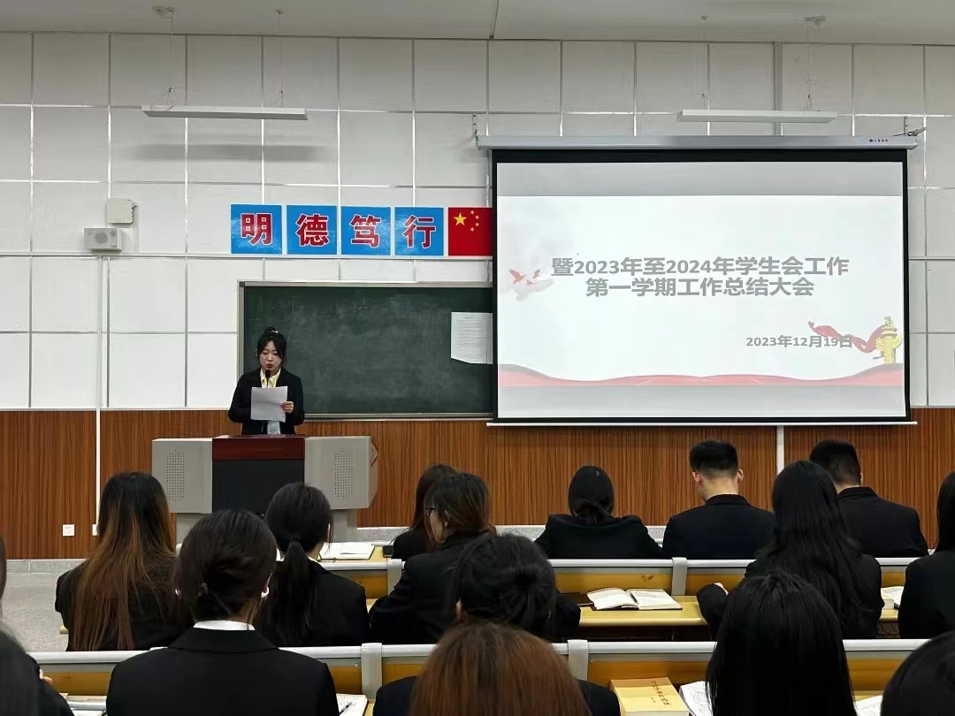 为回顾总结过去一学期学生会及相关部门的工作,深入剖析存在的问题,全面提升学生会工作能力,更好服务学生,世界杯官网于12月19日召开2023—2024届学生会第一学期工作总结大会。会议由主席团成员苏可心主持,世界杯官网全体学生会干部以及学生会代表参加。