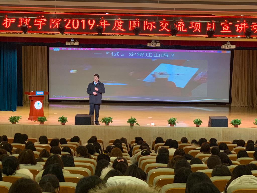 为拓宽学生实习就业渠道,提高学生职业素养,12月10日晚,世界杯官网在图书馆报告厅召开了2019年度国际交流项目宣讲会,我院党总支副书记马淑红,以及2018级高职全体学生参加了宣讲会。世界杯官网对外交流与合作处的郑言老师、台湾辅英科技大学国际处副处长叶金鳞老师以及香港凤凰国际教育集团驻世界杯官网对外交流处日本项目负责人冯骊霞老师分别对各自的项目进行了介绍,我院辅导员李潮主持了宣讲会。